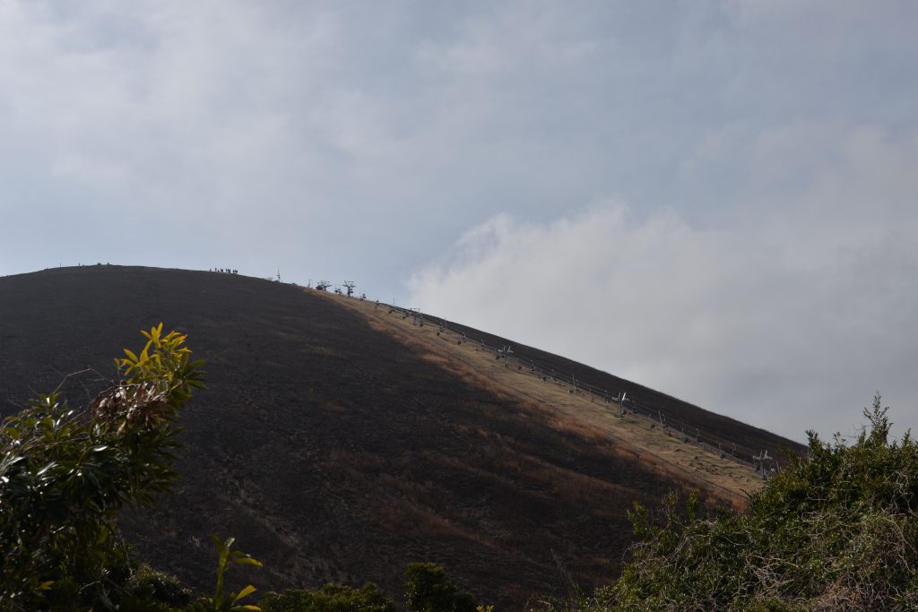 今回の伊豆旅行では、ちょうど山焼きが終わった後の大室山を見ることができました。